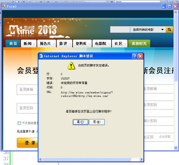 编写自动登录的程序时出现【脚本错误】