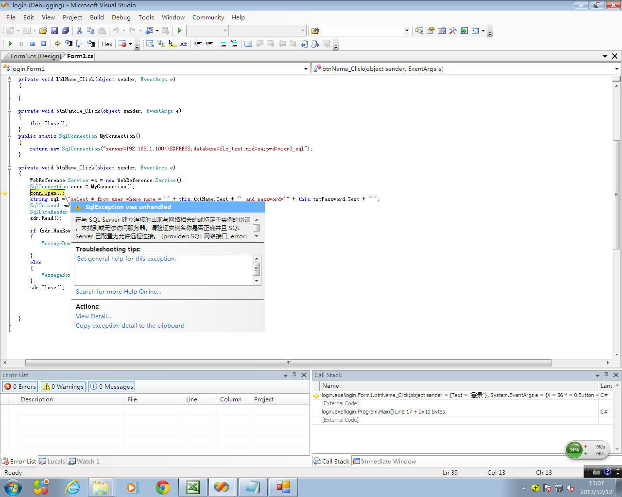 private static string SERVERIP = "192.168.1.100"; //服务器IP,如果是在本机架设的数据库就用127.0.0.1