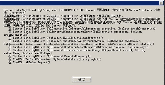 VPN "SQLNULI10"返回了消息“登录超时已过期”