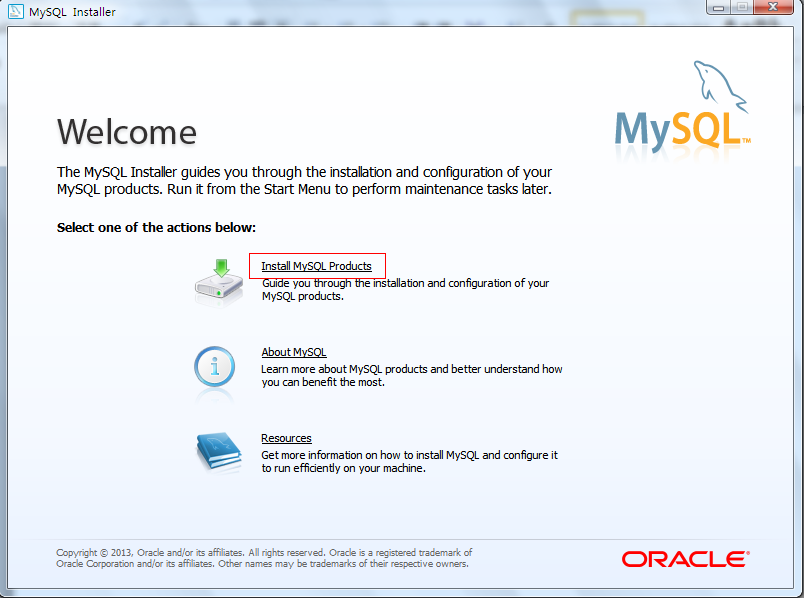 点击上图红框“Install MySQL Products”进入安装界面,如下图: