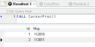 DELIMITER $$ DROP PROCEDURE IF EXISTS `test`.`CursorProc` $$ CREATE PROCEDURE `test`.`CursorProc` () BEGIN DECLARE no_more_products, quantity_in_stock INT DEFAULT 0; DECLARE prd_code VARCHAR(255); DECLARE cur_product CURSOR FOR SELECT code FROM products; /*First: Delcare a cursor,首先这里对游标进行定义*/ DECLARE CONTINUE HANDLER FOR NOT FOUND SET no_more_products = 1; /*when "not found" occur,just continue,这个是个条件处理,针对NOT FOUND的条件*/ /* for loggging information 创建个临时表格来保持*/ CREATE TEMPORARY TABLE infologs ( Id int(11) NOT NULL AUTO_INCREMENT, Msg varchar(255) NOT NULL, PRIMARY KEY (Id) ); OPEN cur_product; /*Second: Open the cursor 接着使用OPEN打开游标*/ FETCH cur_product INTO prd_code; /*Third: now you can Fetch the row 把第一行数据写入变量中,游标也随之指向了记录的第一行*/ REPEAT SELECT quantity INTO quantity_in_stock FROM products WHERE code = prd_code; IF quantity_in_stock < 100 THEN INSERT INTO infologs(msg) VALUES (prd_code); END IF; FETCH cur_product INTO prd_code; UNTIL no_more_products = 1 END REPEAT; CLOSE cur_product; /*Finally: cursor need be closed 用完后记得用CLOSE把资源释放掉*/ SELECT * FROM infologs; DROP TABLE infologs; END $$ DELIMITER ;下面是最终的结果: