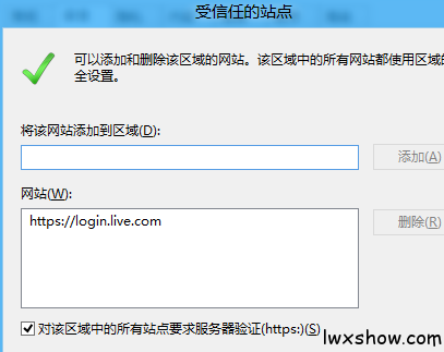 然后我们需要把微软的网站加入到里面: