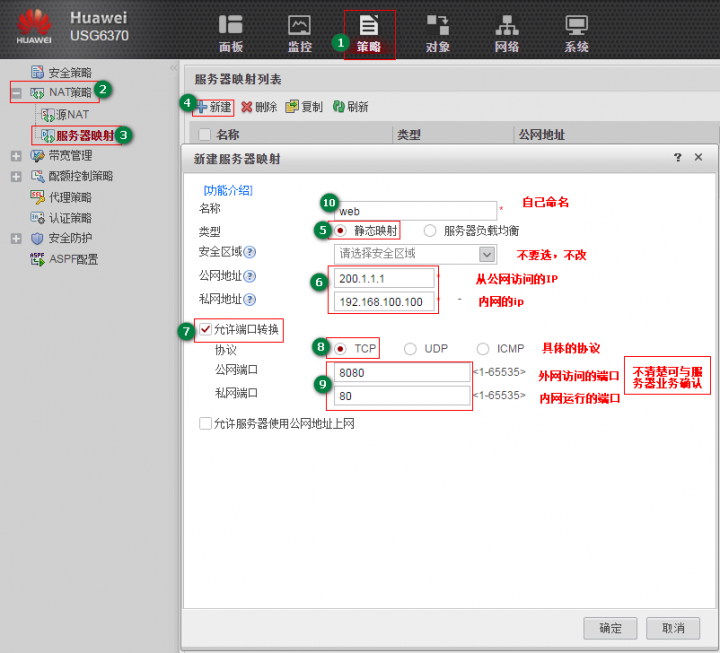USG6000:策略 > NAT策略 > 服务器映射