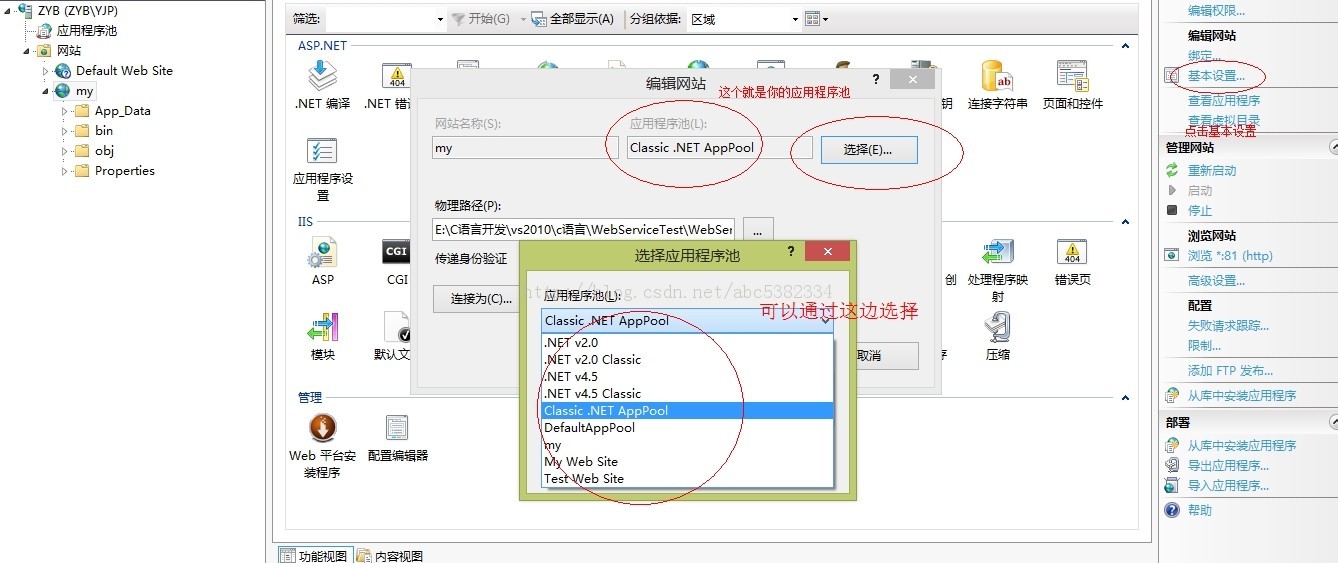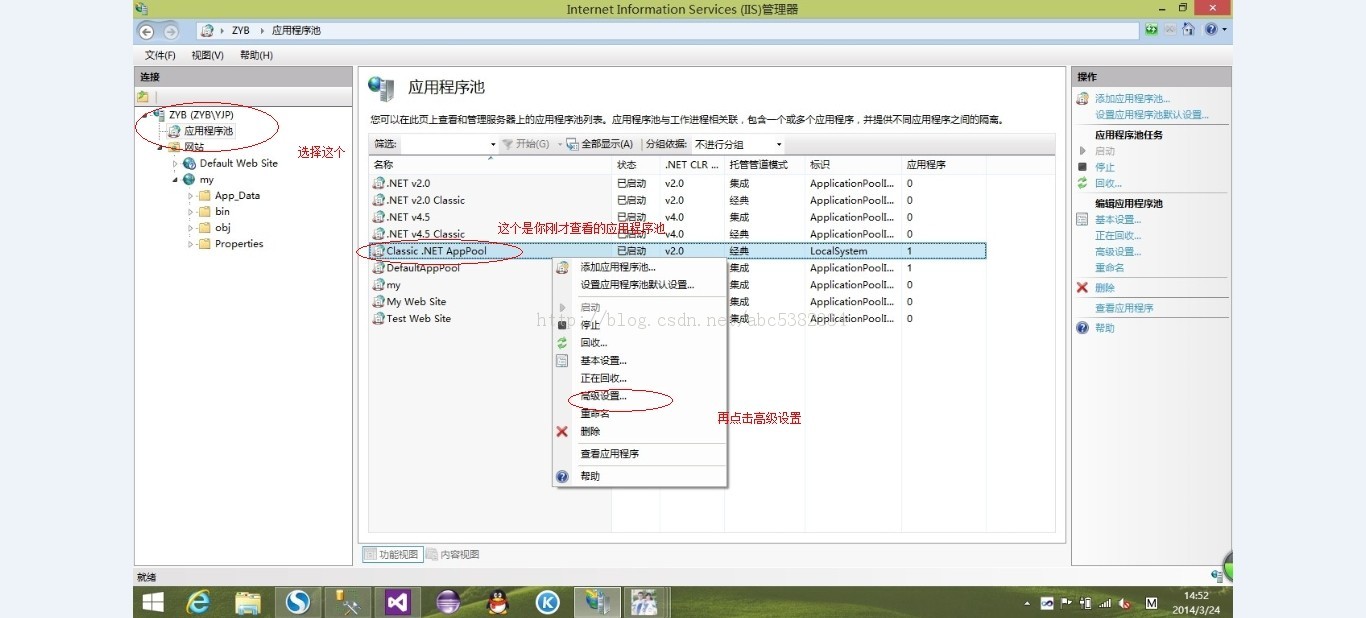 1、先查看你的网站使用的是哪个应用程序池