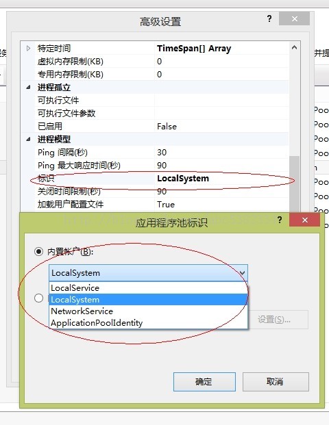 修改应用程序池 → 高级设置 → 内置账户为 LocalSystem 即可