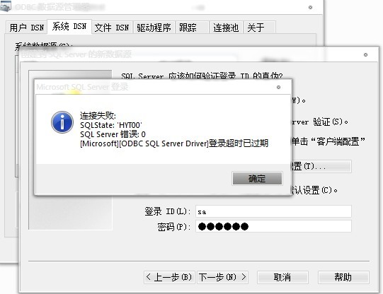 以前用的都没事, 因为前几天有事回家了, 电脑就有几天没用了, 今天使用MyEclipse和SQL SERVER 2005的时候, 在网页中显示了ODBC登录超时,于是我就把数据源删除了 ,想重新添加一个数据源, 结果数据源添加不成功, 出现了上图的情况,请各位帮帮忙, 解决了.  Ps:学的是JSP
