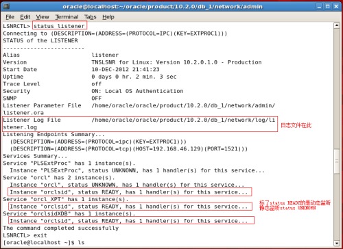 ORACLE实例在启动时,或使用命令ALTER SYSTEM REGISTER ,或每隔一分钟,PMON进程会向监听进行动态注册,PMON进程根据init.ora中的instance_name,service_names两个参数将实例和服务动态注册到listener中;oracle监听器运行后,oracle实例在open时,会动态向监听程序注册其service_names和instance_name。可以使用show parameter instance_name和show parameter service_names来查看实例名和服务名,服务名可以有多个;