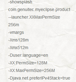 1,在MyEclipse的安装目录下吗。找到eclipse.ini文件,事例:F:\MyEclipse9.0\myeclipse\MyEclipse?9\myeclipse.ini?