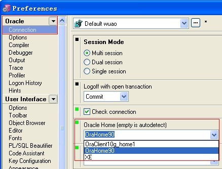 如果安装了多个 ORACLE 版本, 那么在使用 PL/SQL Dev 登录的时候, 可以选择一个版本进行登录。