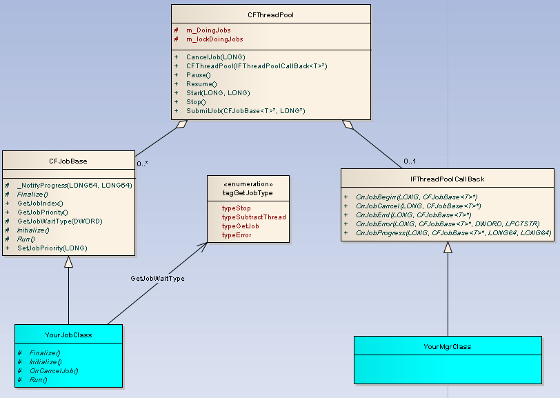 CFJobBase – Job的基类,如果想实现自己的Job,必须从这个类继承,并实现其中的Run/ OnCancelJob 等函数。